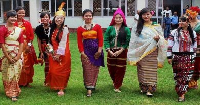 Assamese women wear motif-rich mekhela chador which is a two-piece garment.