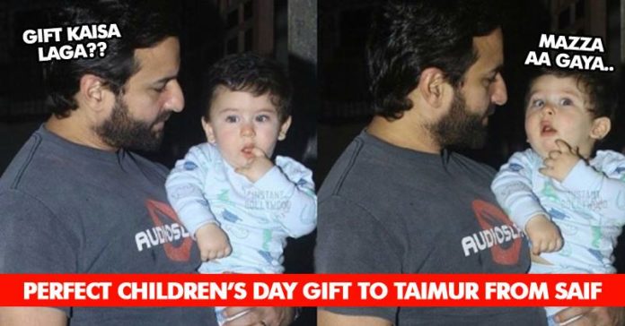 Taimur will be one year old in December but just one month before that, i.e., on Children’s Day, cool daddy Saif Ali Khan has decided to present his son a classy gift.
