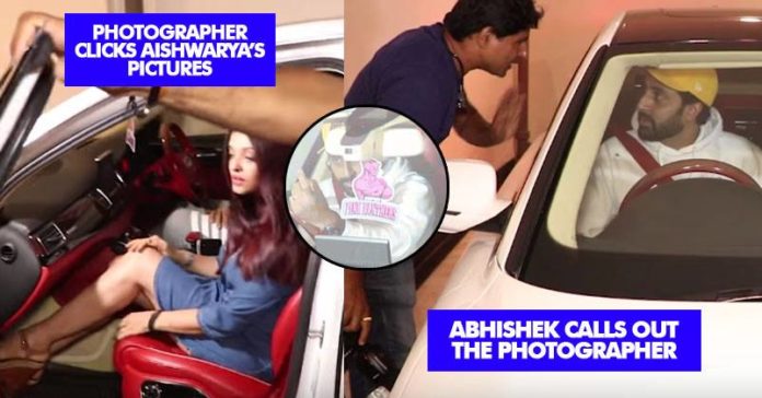 As Aishwarya’s dress was short, a photographer made an attempt of clicking photos of her legs as she was sitting in the car which was being driven by Abhishek.
