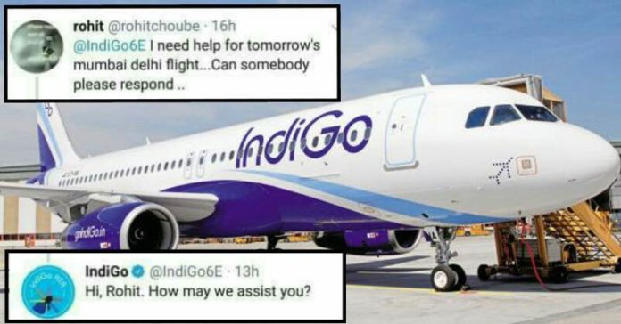 @IndiGo6E I need help for tomorrow's mumbai delhi flight…Can somebody please respond ..— rohit (@rohitchoube) November 7, 2017