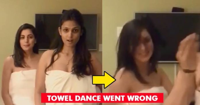 No, it’s not what you are thinking. Her towel didn’t fall down, but she got hurt in her eye. While dancing, she got hurt by her friend’s hand & she had to pause it in between.
