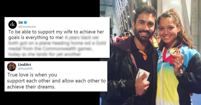To be able to support my wife to achieve her goals is everything to me! 4 years back we both got on a plane heading home wd a Gold medal from the Commonwealth games , today as she lands for yet another commonwealth games after 4 long years of hardwork , I can only hope that— DK (@DineshKarthik) April 1, 2018