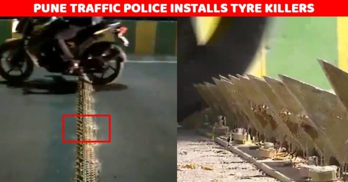 Pune becomes 1st city in India to install tyre killers for wrong side driving #Pune#म pic.twitter.com/jVANLZ8x09— Vishal Surywanshi (@vsurywanshi87) March 30, 2018