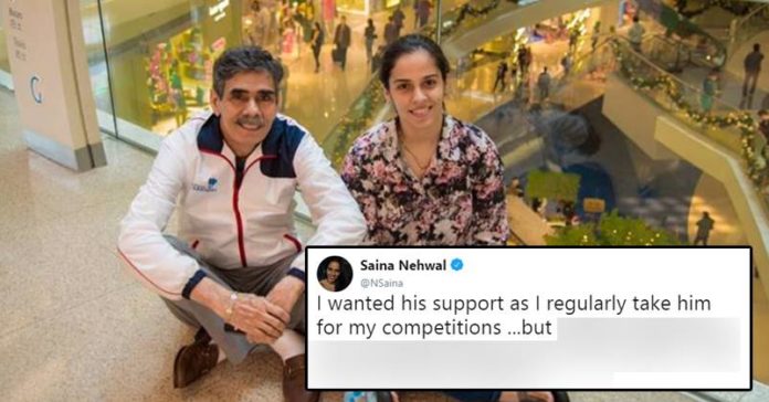 The Indian badminton player Saina Nehwal is not happy with the fact that on Monday, her father Harvir Singh Nehwal was denied entry in the Games Village at Gold Coast. This has happened because Harvir’s name has been omitted from the list of Indian team officials for the Commonwealth Games; however, earlier it was confirmed that his name is included in the list.