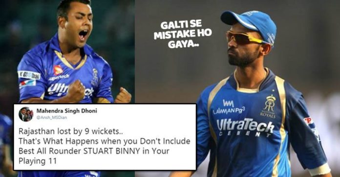 Although people are sarcastic here but still Binny should have been part of playing XI considering the fact that RR has lost this match very easily.